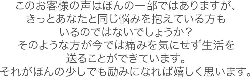 痛みを取り除くだけでなく、根本治療を目指されていると伺ったのでお願いしようと思いました。
