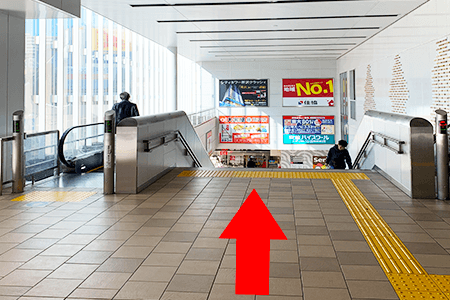 2エスカレーターや階段が右側に⾒えましたら、こちらを下ってください。