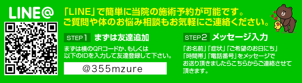 ※施術中は電話に出られませんので留守番電話にお名前と電話番号を伝言下さい。すぐに折り返し致します。